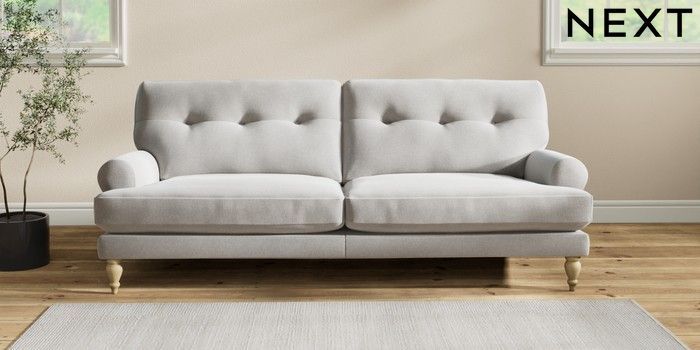7.2.10 Erin Buttoned Back Deep Relaxed Sit 3 Seater Sofa Natural Mix Light Grey High Classic Turned - Light | Made Click here to use our website with more accessibility support, for example screen readers