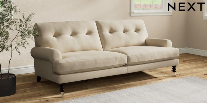 7.2.10 Erin Buttoned Back Deep Relaxed Sit 3 Seater Sofa Natural Mix Light Natural High Classic Turned Chrome Castor - Dark | Made Click here to use our website with more accessibility support, for example screen readers