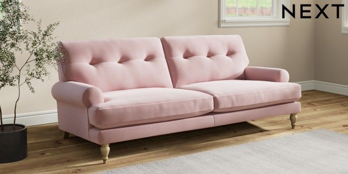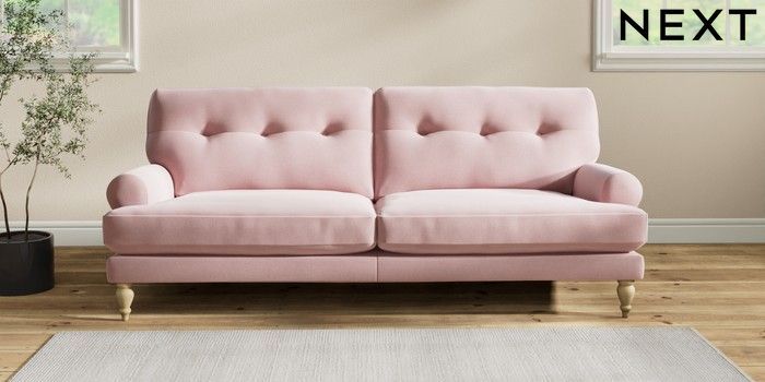 7.2.10 Erin Buttoned Back Deep Relaxed Sit 3 Seater Sofa Natural Mix Light Rose Pink High Classic Turned - Light | Made Click here to use our website with more accessibility support, for example screen readers