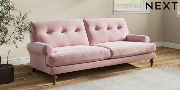 7.2.10 Erin Buttoned Back Deep Relaxed Sit 3 Seater Sofa Natural Mix Light Rose Pink High Classic Turned - Mid | Made Click here to use our website with more accessibility support, for example screen readers