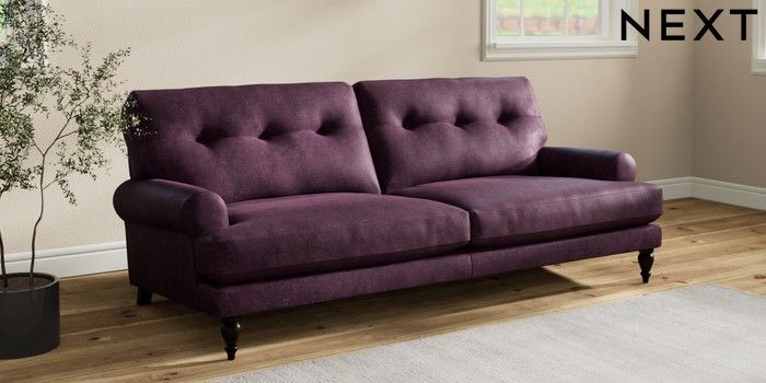 7.2.10 Erin Buttoned Back Deep Relaxed Sit 3 Seater Sofa Plush Chenille Dark Plum Purple High Classic Turned - Dark | Made Click here to use our website with more accessibility support, for example screen readers