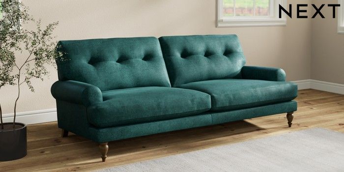 7.2.10 Erin Buttoned Back Deep Relaxed Sit 3 Seater Sofa Plush Chenille Dark Teal Green High Classic Turned - Mid | Made Click here to use our website with more accessibility support, for example screen readers