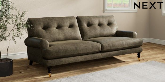 7.2.10 Erin Buttoned Back Deep Relaxed Sit 3 Seater Sofa Plush Chenille Moss Green High Classic Turned Brass Castor - Dark | Made Click here to use our website with more accessibility support, for example screen readers