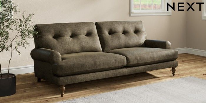 7.2.10 Erin Buttoned Back Deep Relaxed Sit 3 Seater Sofa Plush Chenille Moss Green High Classic Turned - Mid | Made Click here to use our website with more accessibility support, for example screen readers