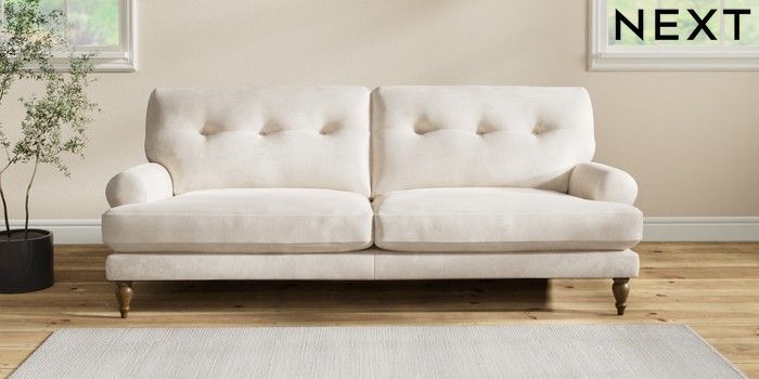7.2.10 Erin Buttoned Back Deep Relaxed Sit 3 Seater Sofa Plush Chenille Oyster High Classic Turned - Mid | Made Click here to use our website with more accessibility support, for example screen readers