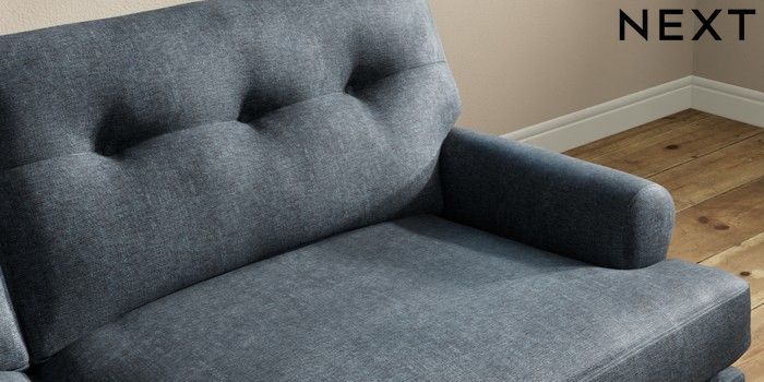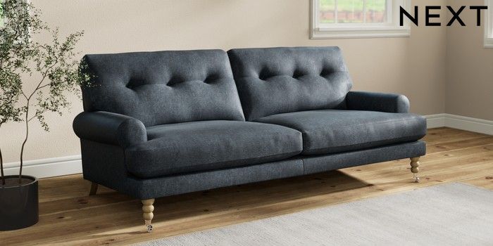 7.2.10 Erin Buttoned Back Deep Relaxed Sit 3 Seater Sofa Plush Chenille Slate Blue High Classic Turned Chrome Castor - Light | Made Click here to use our website with more accessibility support, for example screen readers