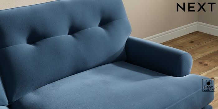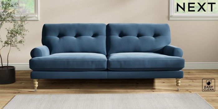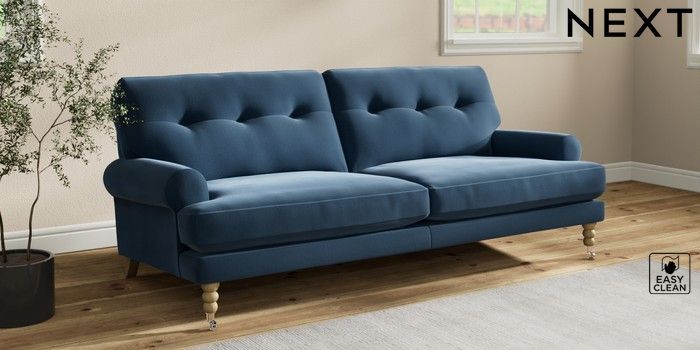 7.2.10 Erin Buttoned Back Deep Relaxed Sit 3 Seater Sofa Plush Velvet Easy Clean Airforce Blue High Classic Turned Chrome Castor - Light | Made Click here to use our website with more accessibility support, for example screen readers