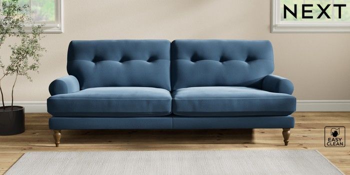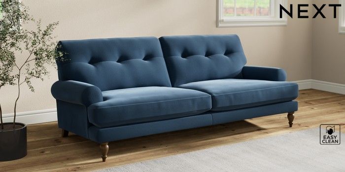 7.2.10 Erin Buttoned Back Deep Relaxed Sit 3 Seater Sofa Plush Velvet Easy Clean Airforce Blue High Classic Turned - Mid | Made Click here to use our website with more accessibility support, for example screen readers