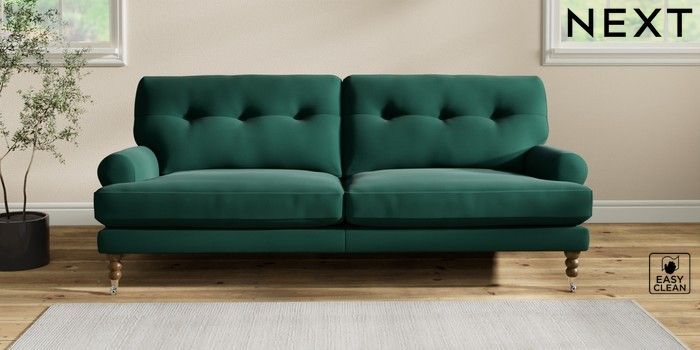 7.2.10 Erin Buttoned Back Deep Relaxed Sit 3 Seater Sofa Plush Velvet Easy Clean Bottle Green High Classic Turned Chrome Castor - Mid | Made Click here to use our website with more accessibility support, for example screen readers