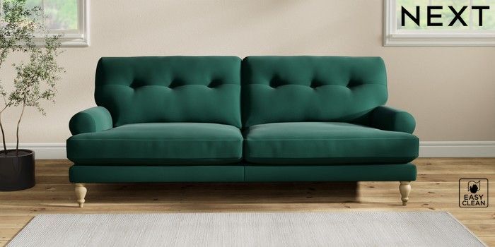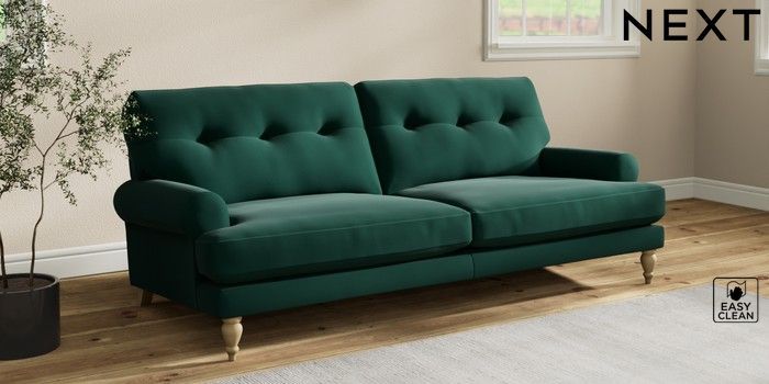 7.2.10 Erin Buttoned Back Deep Relaxed Sit 3 Seater Sofa Plush Velvet Easy Clean Bottle Green High Classic Turned - Light | Made Click here to use our website with more accessibility support, for example screen readers