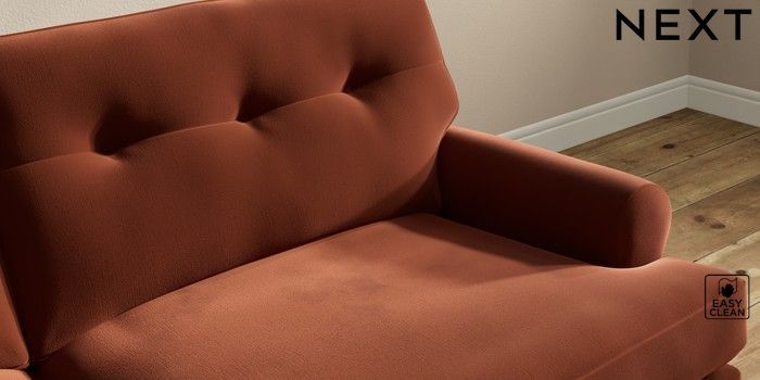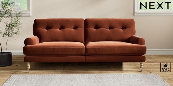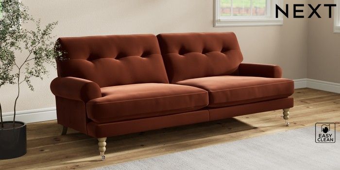 7.2.10 Erin Buttoned Back Deep Relaxed Sit 3 Seater Sofa Plush Velvet Easy Clean Ginger Orange High Classic Turned Chrome Castor - Light | Made Click here to use our website with more accessibility support, for example screen readers