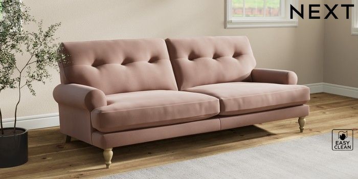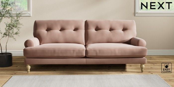 7.2.10 Erin Buttoned Back Deep Relaxed Sit 3 Seater Sofa Plush Velvet Easy Clean Mid Natural High Classic Turned - Light | Made Click here to use our website with more accessibility support, for example screen readers