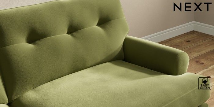 7.2.10 Erin Buttoned Back Deep Relaxed Sit 3 Seater Sofa Plush Velvet Easy Clean Mid Olive Green High Classic Turned Brass Castor - Mid | Made Click here to use our website with more accessibility support, for example screen readers