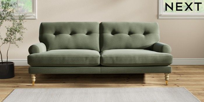 Add charm to your living space with the Erin Button Back Sofa. Its elegant scroll arms and classic button-back cushions create a timeless look. You'll love its "Relaxed Sit" cushions, specially designed for ultimate comfort. These cushions are made with clever foam and fibre, giving you a wonderfully soft, plump feel. To keep them looking their best, simply plump and turn them regularly. Plus, you can make the Erin your own by choosing from a huge range of coloured fabrics.
