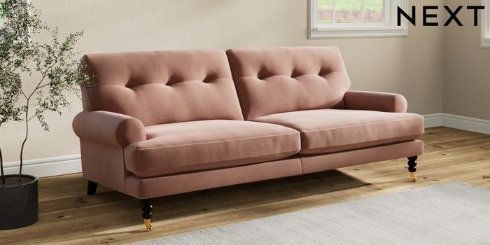7.2.10 Erin Buttoned Back Deep Relaxed Sit 3 Seater Sofa Relaxed Linen Look Light Rust Brown High Classic Turned Brass Castor - Dark | Made Click here to use our website with more accessibility support, for example screen readers