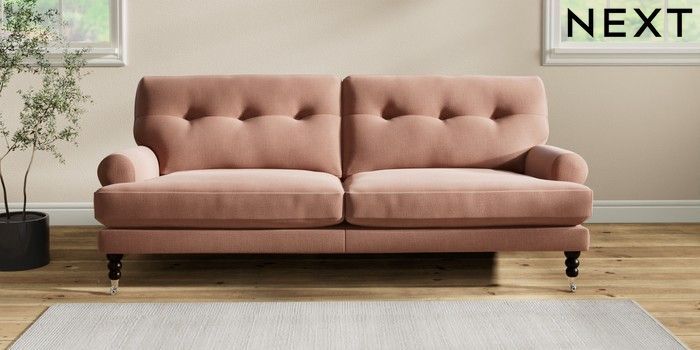 7.2.10 Erin Buttoned Back Deep Relaxed Sit 3 Seater Sofa Relaxed Linen Look Light Rust Brown High Classic Turned Chrome Castor - Dark | Made Click here to use our website with more accessibility support, for example screen readers