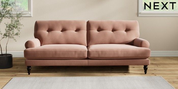 7.2.10 Erin Buttoned Back Deep Relaxed Sit 3 Seater Sofa Relaxed Linen Look Light Rust Brown High Classic Turned - Dark | Made Click here to use our website with more accessibility support, for example screen readers
