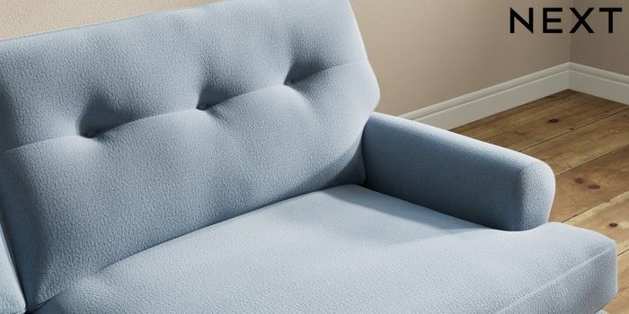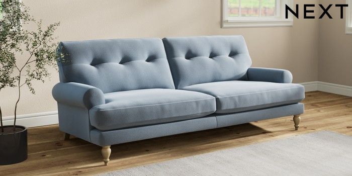 7.2.10 Erin Buttoned Back Deep Relaxed Sit 3 Seater Sofa Relaxed Linen Look Mid Blue High Classic Turned - Light | Made Click here to use our website with more accessibility support, for example screen readers