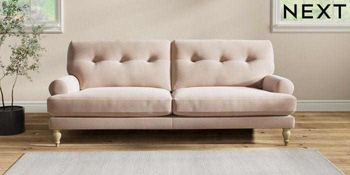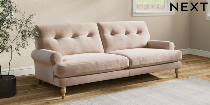 7.2.10 Erin Buttoned Back Deep Relaxed Sit 3 Seater Sofa Relaxed Linen Look Mid Natural High Classic Turned - Light | Made Click here to use our website with more accessibility support, for example screen readers