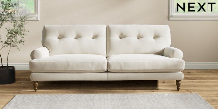 7.2.10 Erin Buttoned Back Deep Relaxed Sit 3 Seater Sofa Relaxed Linen Look Oyster High Classic Turned - Mid | Made Click here to use our website with more accessibility support, for example screen readers