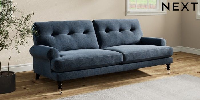 7.2.10 Erin Buttoned Back Deep Relaxed Sit 3 Seater Sofa Ripple Chenille Dark Blue High Classic Turned Chrome Castor - Dark | Made Click here to use our website with more accessibility support, for example screen readers