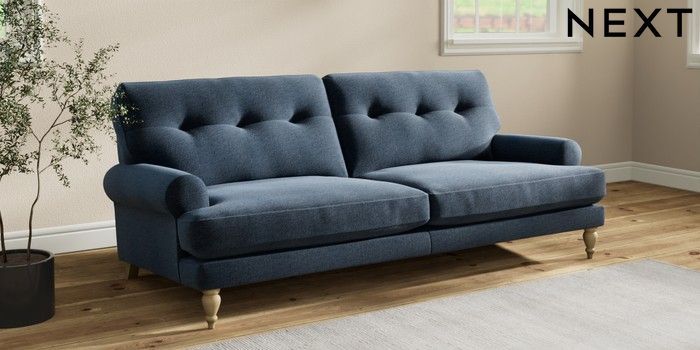 7.2.10 Erin Buttoned Back Deep Relaxed Sit 3 Seater Sofa Ripple Chenille Dark Blue High Classic Turned - Light | Made Click here to use our website with more accessibility support, for example screen readers