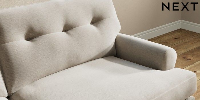 7.2.10 Erin Buttoned Back Deep Relaxed Sit 3 Seater Sofa Ripple Chenille Light Natural High Classic Turned Chrome Castor - Mid | Made Click here to use our website with more accessibility support, for example screen readers