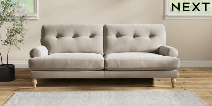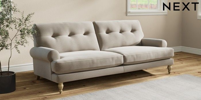 7.2.10 Erin Buttoned Back Deep Relaxed Sit 3 Seater Sofa Ripple Chenille Light Natural High Classic Turned - Light | Made Click here to use our website with more accessibility support, for example screen readers