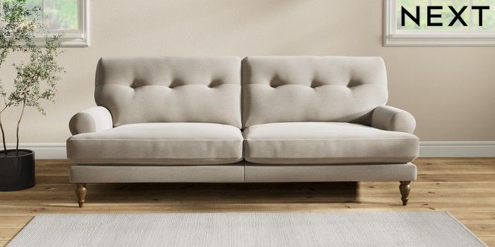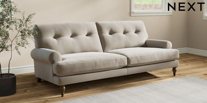 7.2.10 Erin Buttoned Back Deep Relaxed Sit 3 Seater Sofa Ripple Chenille Light Natural High Classic Turned - Mid | Made Click here to use our website with more accessibility support, for example screen readers