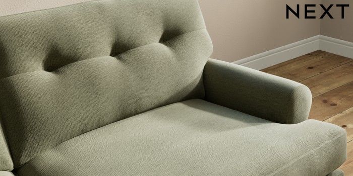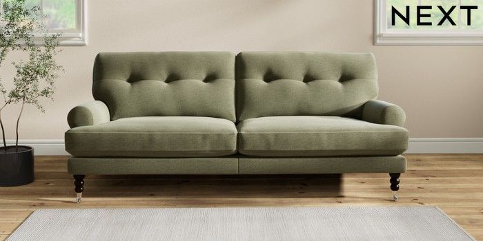 7.2.10 Erin Buttoned Back Deep Relaxed Sit 3 Seater Sofa Ripple Chenille Mid Moss Green High Classic Turned Chrome Castor - Dark | Made Click here to use our website with more accessibility support, for example screen readers