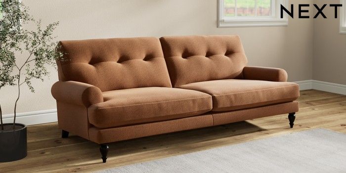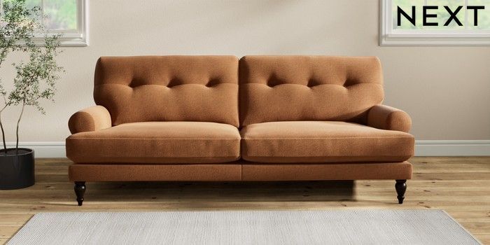 7.2.10 Erin Buttoned Back Deep Relaxed Sit 3 Seater Sofa Ripple Chenille Mid Rust Brown High Classic Turned - Dark | Made Click here to use our website with more accessibility support, for example screen readers