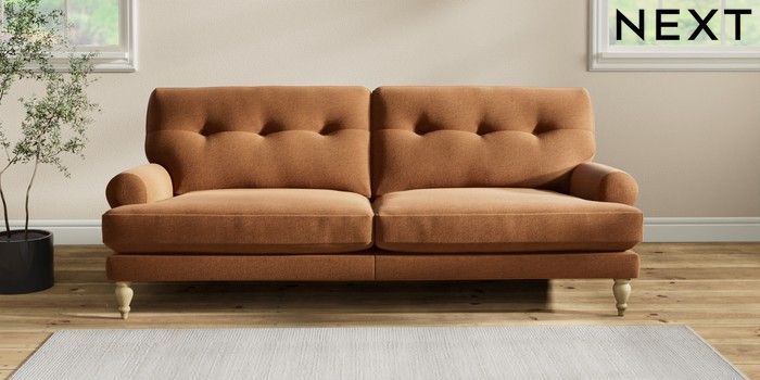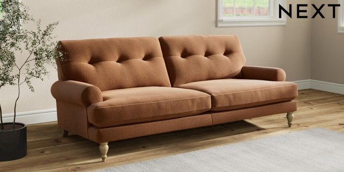7.2.10 Erin Buttoned Back Deep Relaxed Sit 3 Seater Sofa Ripple Chenille Mid Rust Brown High Classic Turned - Light | Made Click here to use our website with more accessibility support, for example screen readers