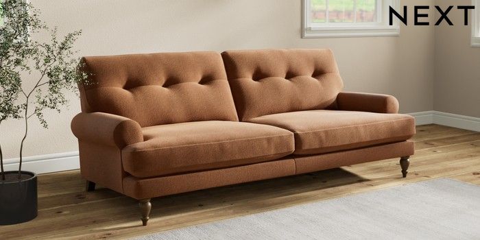7.2.10 Erin Buttoned Back Deep Relaxed Sit 3 Seater Sofa Ripple Chenille Mid Rust Brown High Classic Turned - Mid | Made Click here to use our website with more accessibility support, for example screen readers