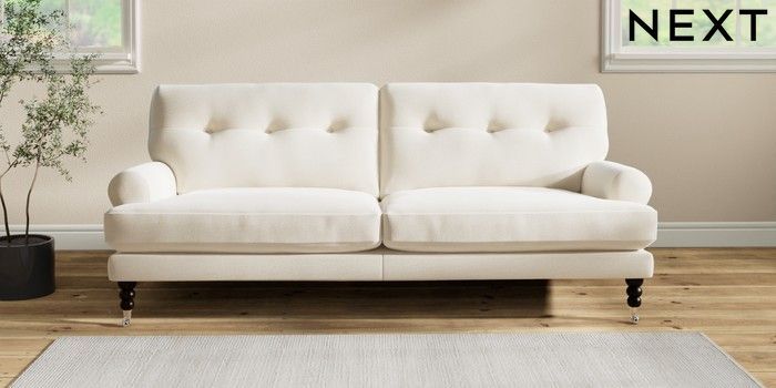 7.2.10 Erin Buttoned Back Deep Relaxed Sit 3 Seater Sofa Ripple Chenille Oyster High Classic Turned Chrome Castor - Dark | Made Click here to use our website with more accessibility support, for example screen readers