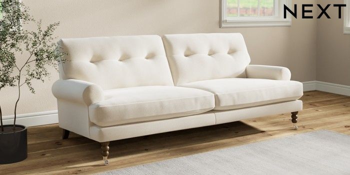 7.2.10 Erin Buttoned Back Deep Relaxed Sit 3 Seater Sofa Ripple Chenille Oyster High Classic Turned Chrome Castor - Mid | Made Click here to use our website with more accessibility support, for example screen readers