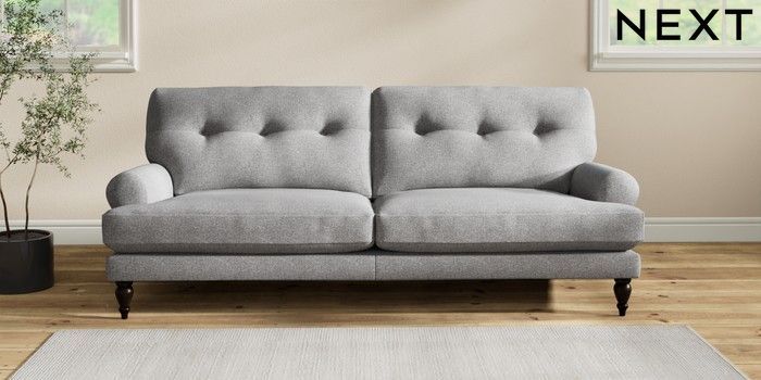 7.2.10 Erin Buttoned Back Deep Relaxed Sit 3 Seater Sofa Studio Chenille Mid Grey High Classic Turned - Dark | Made Click here to use our website with more accessibility support, for example screen readers