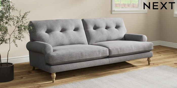 7.2.10 Erin Buttoned Back Deep Relaxed Sit 3 Seater Sofa Studio Chenille Mid Grey High Classic Turned - Light | Made Click here to use our website with more accessibility support, for example screen readers