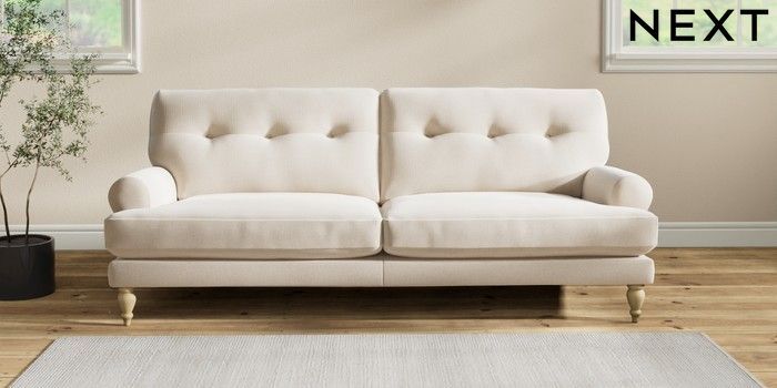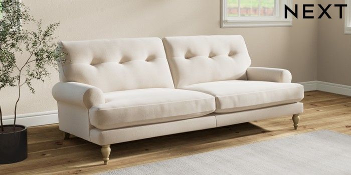 7.2.10 Erin Buttoned Back Deep Relaxed Sit 3 Seater Sofa Studio Chenille Oyster High Classic Turned - Light | Made Click here to use our website with more accessibility support, for example screen readers