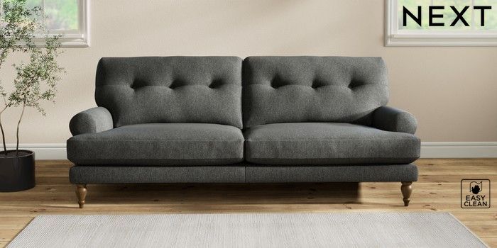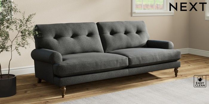 7.2.10 Erin Buttoned Back Deep Relaxed Sit 3 Seater Sofa Tweedy Blend Easy Clean Charcoal Grey High Classic Turned - Mid | Made Click here to use our website with more accessibility support, for example screen readers