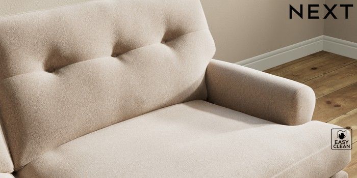 7.2.10 Erin Buttoned Back Deep Relaxed Sit 3 Seater Sofa Tweedy Blend Easy Clean Light Dove Natural High Classic Turned Brass Castor - Dark | Made Click here to use our website with more accessibility support, for example screen readers