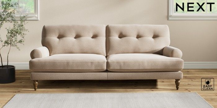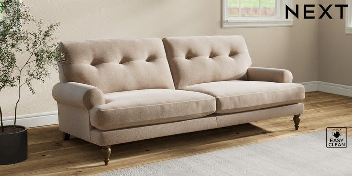 Add charm to your living space with the Erin Button Back Sofa. Its elegant scroll arms and classic button-back cushions create a timeless look. You'll love its "Relaxed Sit" cushions, specially designed for ultimate comfort. These cushions are made with clever foam and fibre, giving you a wonderfully soft, plump feel. To keep them looking their best, simply plump and turn them regularly. Plus, you can make the Erin your own by choosing from a huge range of coloured fabrics.