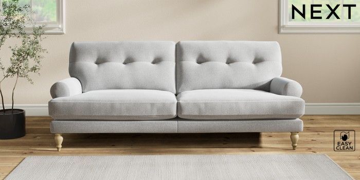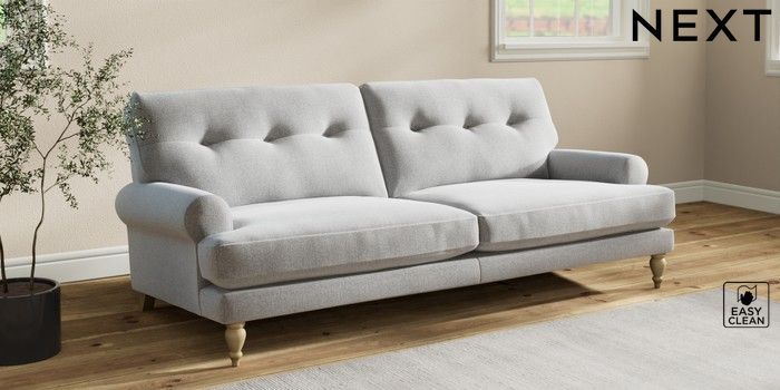 7.2.10 Erin Buttoned Back Deep Relaxed Sit 3 Seater Sofa Tweedy Blend Easy Clean Light Silver Grey High Classic Turned - Light | Made Click here to use our website with more accessibility support, for example screen readers
