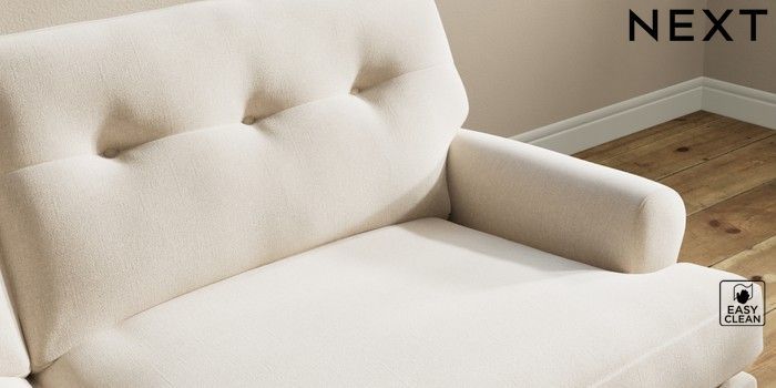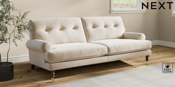 7.2.10 Erin Buttoned Back Deep Relaxed Sit 3 Seater Sofa Tweedy Blend Easy Clean Oyster High Classic Turned Chrome Castor - Mid | Made Click here to use our website with more accessibility support, for example screen readers