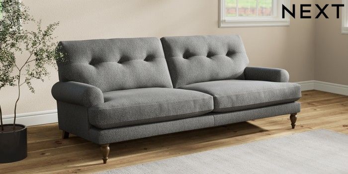7.2.10 Erin Buttoned Back Deep Relaxed Sit 3 Seater Sofa Tweedy Chenille Dark Grey High Classic Turned - Mid | Made Click here to use our website with more accessibility support, for example screen readers