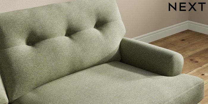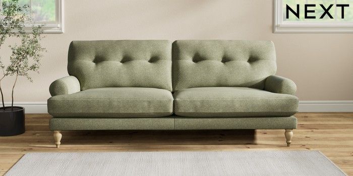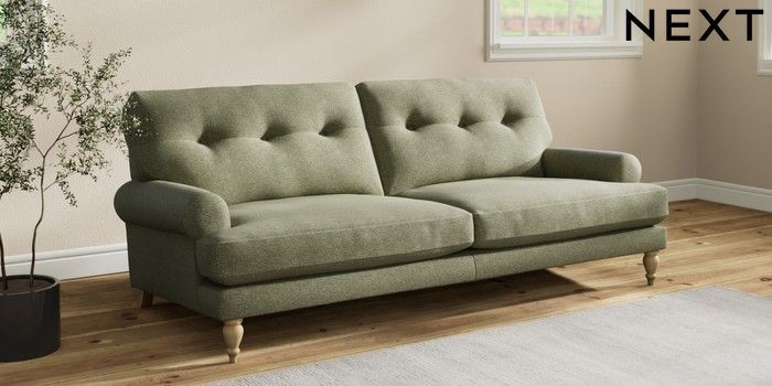 7.2.10 Erin Buttoned Back Deep Relaxed Sit 3 Seater Sofa Tweedy Chenille Mid Moss Green High Classic Turned - Light | Made Click here to use our website with more accessibility support, for example screen readers
