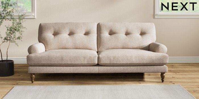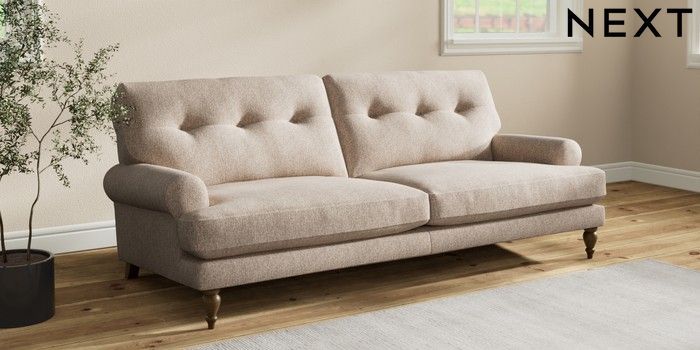 7.2.10 Erin Buttoned Back Deep Relaxed Sit 3 Seater Sofa Tweedy Chenille Mid Natural High Classic Turned - Mid | Made Click here to use our website with more accessibility support, for example screen readers
