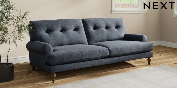 7.2.10 Erin Buttoned Back Deep Relaxed Sit 3 Seater Sofa Tweedy Chenille Navy Blue High Classic Turned - Mid | Made Click here to use our website with more accessibility support, for example screen readers