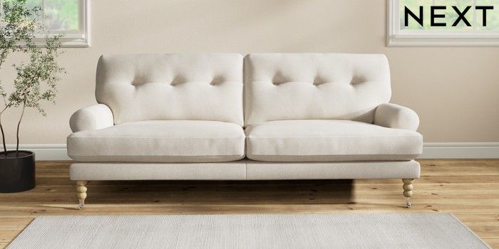 Add charm to your living space with the Erin Button Back Sofa. Its elegant scroll arms and classic button-back cushions create a timeless look. You'll love its "Relaxed Sit" cushions, specially designed for ultimate comfort. These cushions are made with clever foam and fibre, giving you a wonderfully soft, plump feel. To keep them looking their best, simply plump and turn them regularly. Plus, you can make the Erin your own by choosing from a huge range of coloured fabrics.