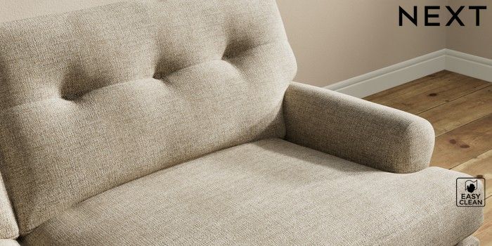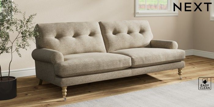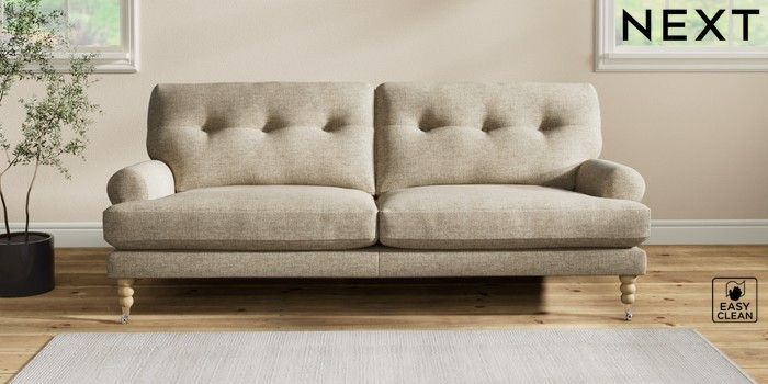 7.2.10 Erin Buttoned Back Deep Relaxed Sit 3 Seater Sofa Woven Chenille Easy Clean Mid Natural High Classic Turned Chrome Castor - Light | Made Click here to use our website with more accessibility support, for example screen readers