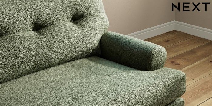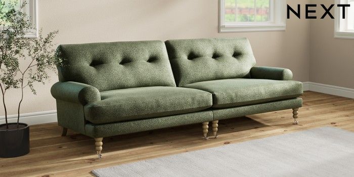 7.2.10 Erin Buttoned Back Deep Relaxed Sit 4 Seater Large Sofa Boucle Chenille Dark Moss Green High Classic Turned Chrome Castor - Light | Made Click here to use our website with more accessibility support, for example screen readers